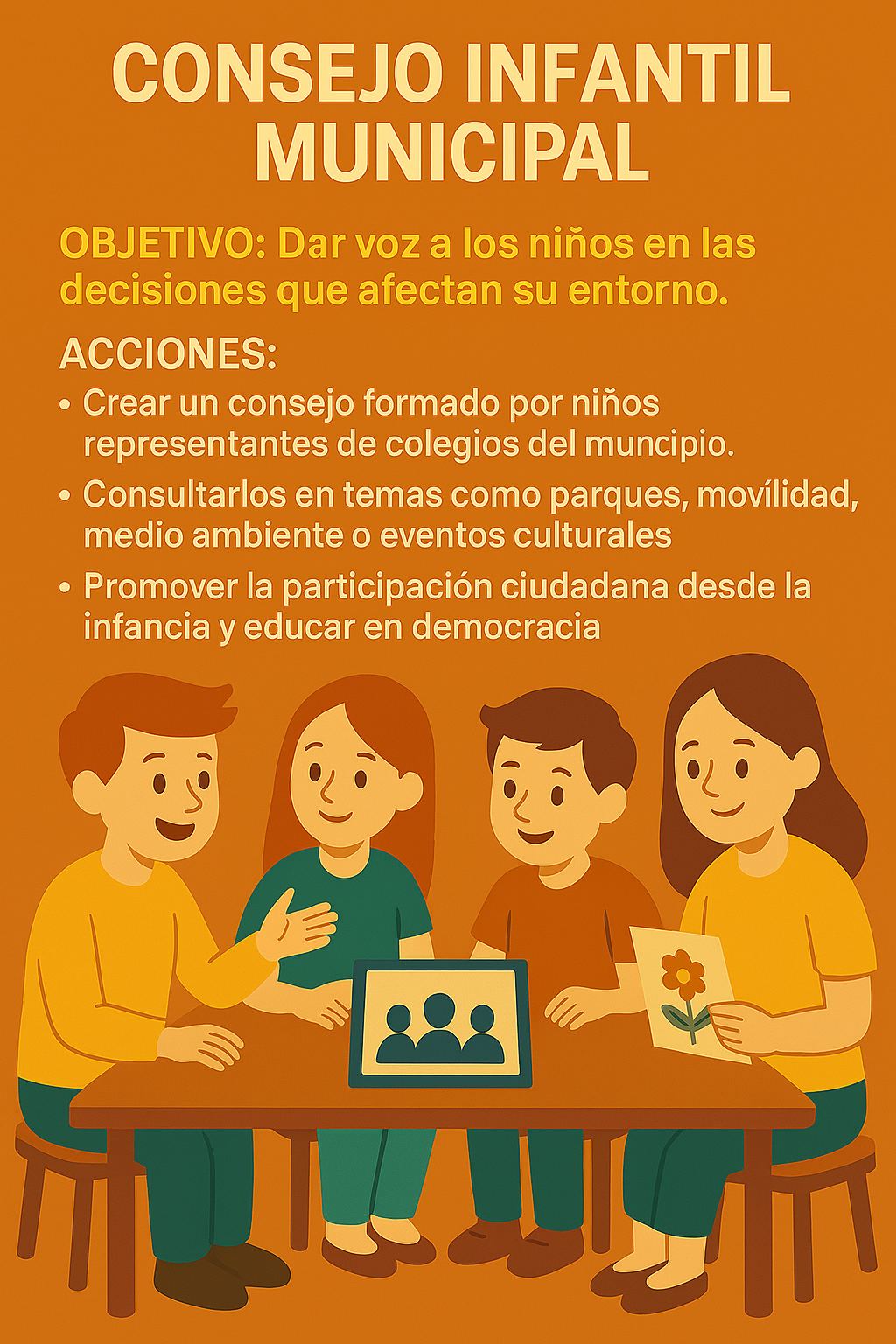 Crear un consejo formado por niños representantes de colegios del municipio.