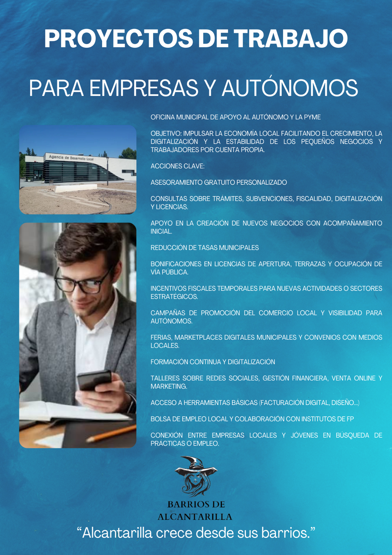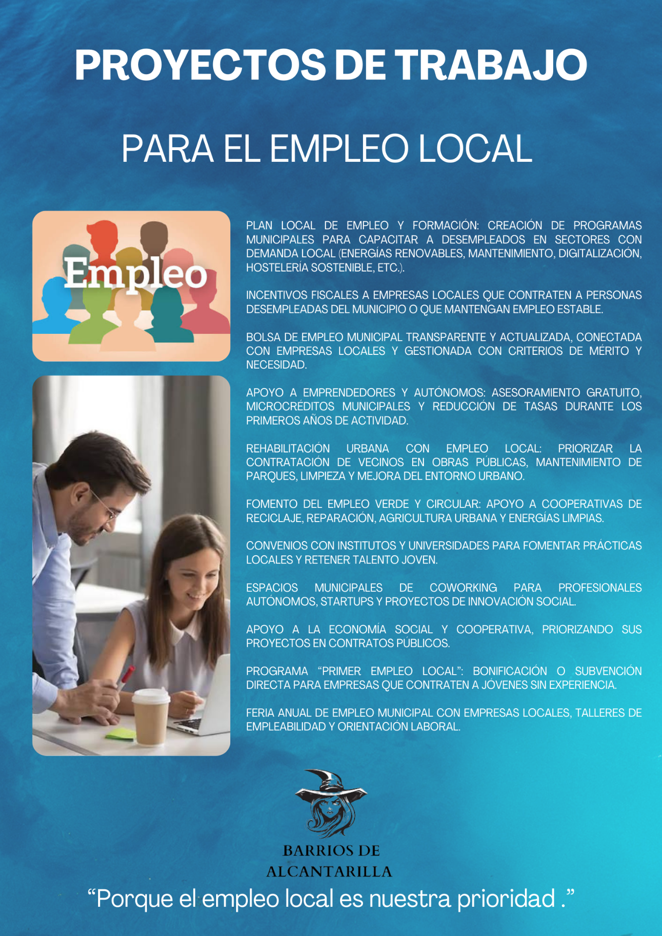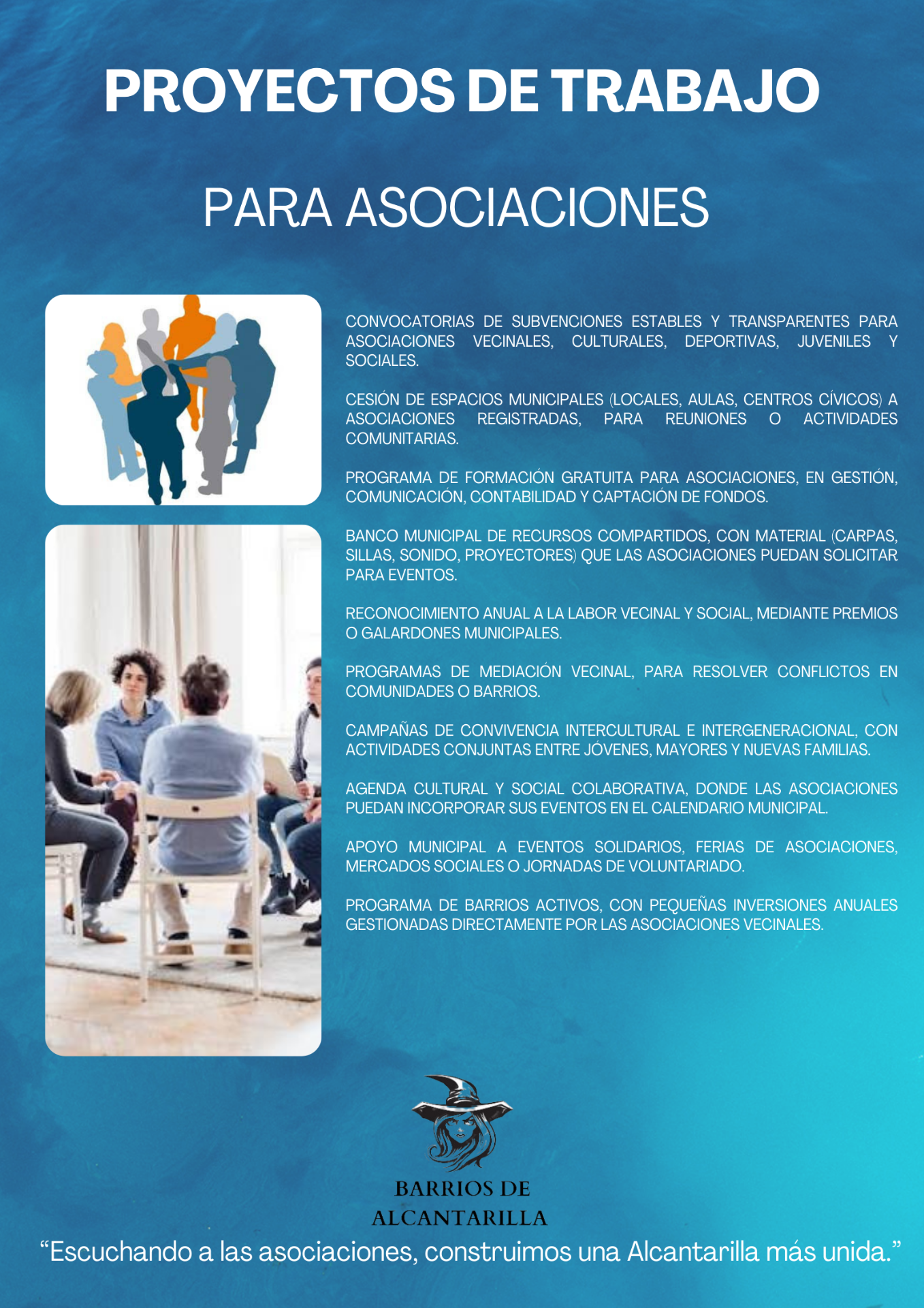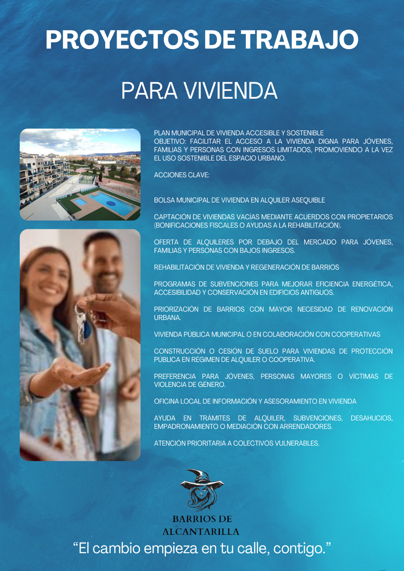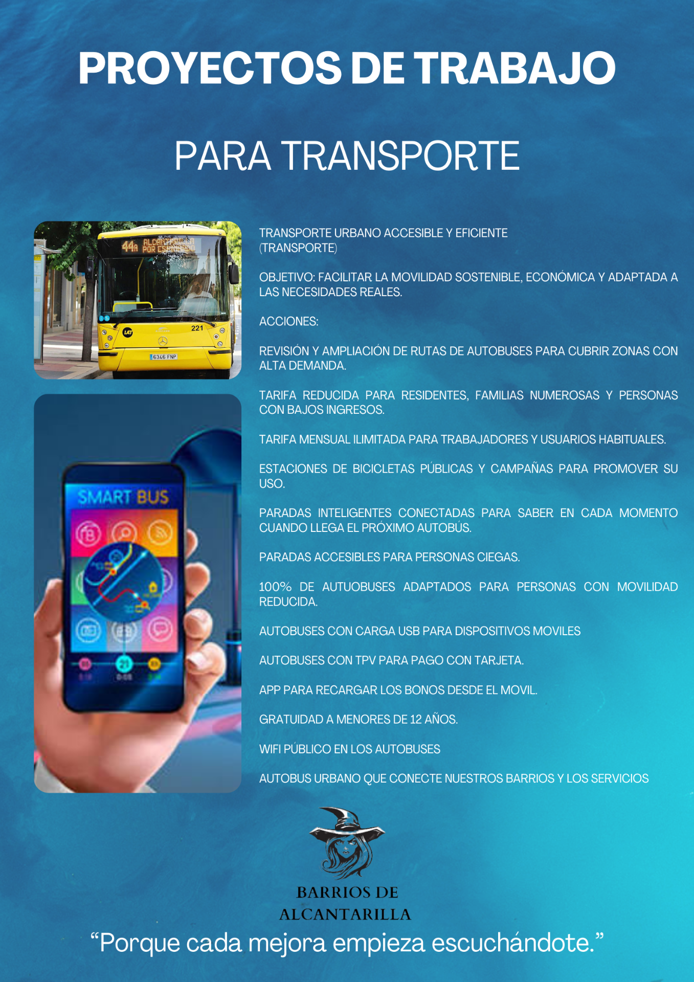 Nuestro proyecto busca mejorar la calidad de vida de todos los barrios de Alcantarilla, fomentando participación ciudadana, innovación urbana y servicios públicos de calidad.